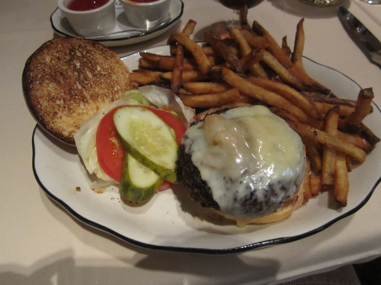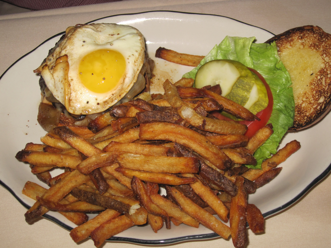 So was our lunch at Butcher and Singer worth the $20? It most certainly was! While it wasn’t the best salad or burger that I have ever had (Good Dog and Standard Tap are better), it was still very good. Our burgers were cooked to our specifications, and although our waitress informed us that they are not permitted to make changes or substitutions to the prix fixe menu, they still fulfilled Limpd’s request to add a fried egg to his burger for a nominal charge of $3. It’s the atmosphere and service that makes eating at this restaurant worth the money. Efficient and courteous service, coupled with a room where you can actually have a conversation makes for a very rewarding dining experience. As I said at the beginning of this post, sometimes it isn’t just about the food. It’s about the experience.