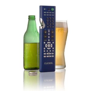 The Clicker ($24) is your basic universal remote with a bottle opener slammed in the side. You can control 8 separate A/V components plus your brew …. Perfection! This one is going on my wishlist.