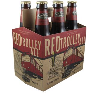 “Red Trolley Ale is a medium-bodied beer with heavyweight malts. We brew it with a half ton of caramelized malts for a rich copper color and toffee flavor. After adding the perfect mix of hops for balance, we warm ferment the beer to bring out a hint of dried raisins and currants. The complexity of flavors makes Red Trolley Ale a hearty and truly enjoyable beer.”