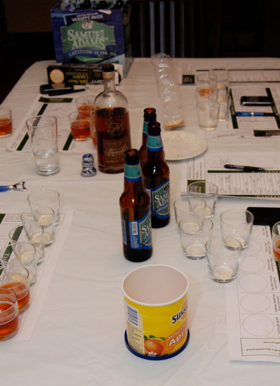 B — The order we used, by chance, pretty much went weakest to strongest. You might want to reverse 5 & 6 and taste the Simcoe last. I would start with the full Lat 48 and pretty much follow the same order. It helps to have something as a palate cleanser in between tastes.