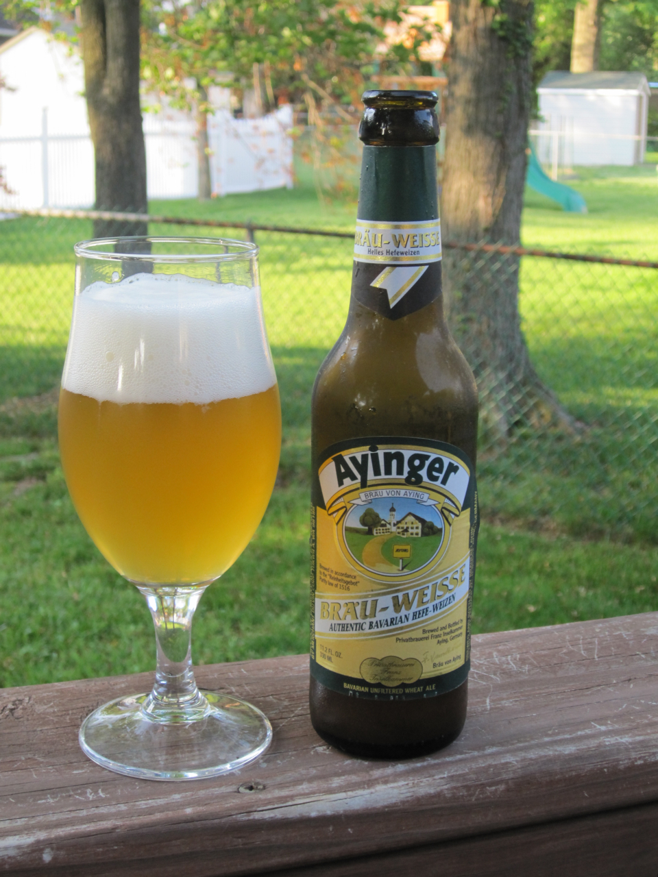 I first had the Ayinger Brau-Weisse Hefe Weizen on draught during my anniversary weekend in Manhattan with Mrs. G-LO. I liked it so much that I just had to pick up a bottle to see how it compares to the draught version.