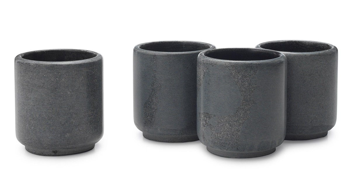 Throw these soapstone “glasses” into the freezer 4 hours or more before your drinking session and you’ll be ready for chilled shots of vodka or un-watered down drams of whiskey.