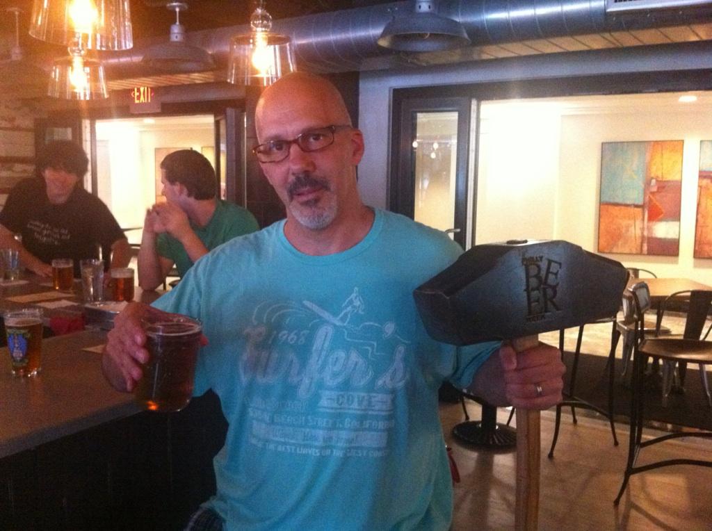 • Fergie’s Pub: At 4PM, a firkin of Dogfish Head 75 Minute IPA was tapped for the very thirsty PBW craft beer lovers. The Alemonger, fresh from a Lagunitas tap takeover at The Cooperage, and an escorted walk up Sansom Street with Matt and Jenn of Philly Beer Week and the PBW Hammer of Glory, was there for the tapping, and quickly working his way through a pint of this delicious beer when I finally showed up at 5:10. I grabbed a pint ASAP and was introduced to The Alemonger’s new friends. We chatted with Jenn for a few minutes and heard some details about the stuff that goes on behind the scenes of PBW. Since there were numerous other events happening that night, Jenn and Matt moved on and left us to finish our beers. I was able to leave Fergie’s with three Dogfish Head pint glasses.
