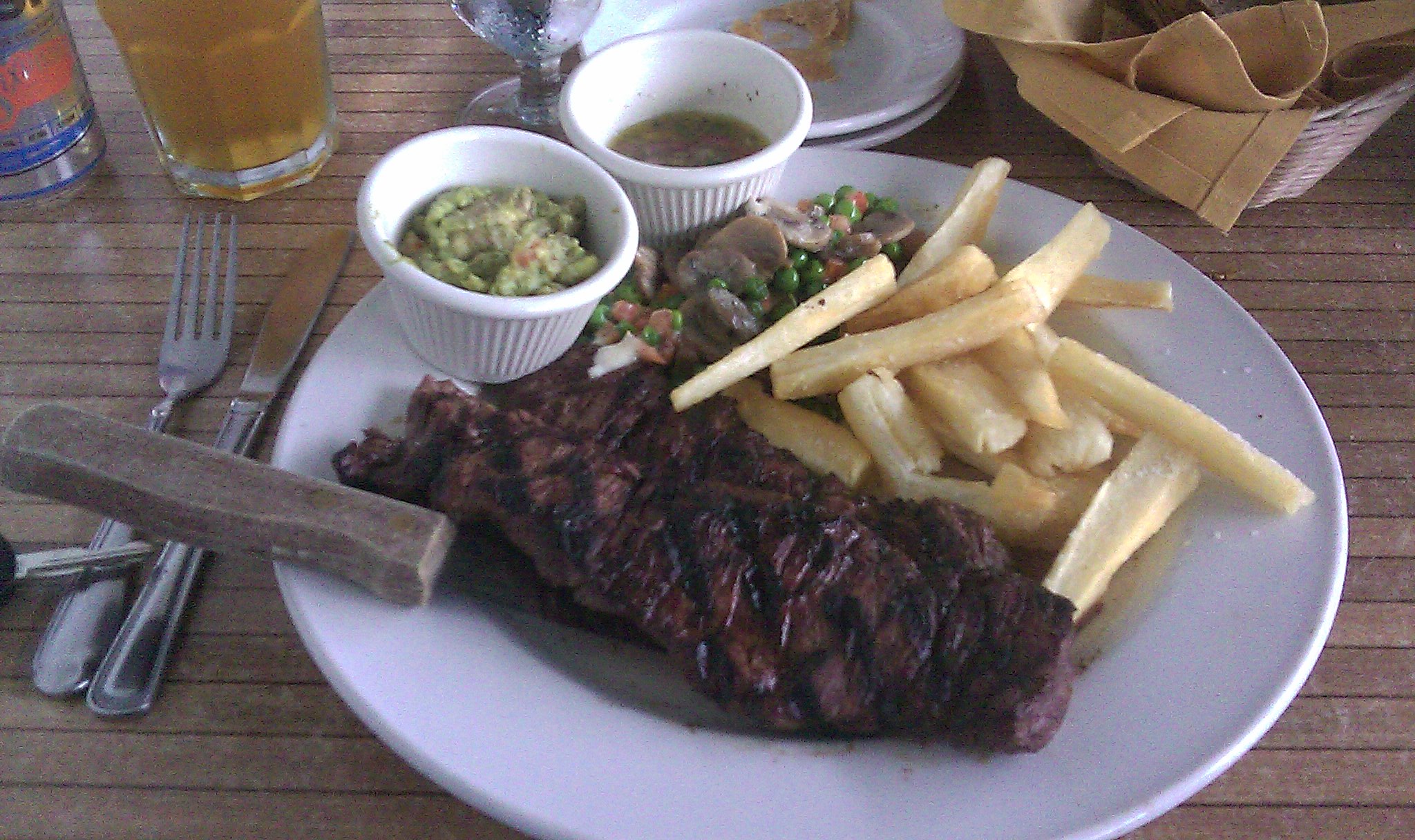 For the main course I had the Churrasco Steak.  It’s a grilled skirt steak served with fried yuca,  a mushroom ragout, more of that great guacamole, and accompanied with Casona’s take on chimichurri sauce.  The steak was done to perfection and the yuca, that my wife didn’t steal, was awesome.  The best part is the chimichurri, Casona makes this more as a tangy vinegar sauce than the typical herb puree.  It’s goes perfectly with the steak.