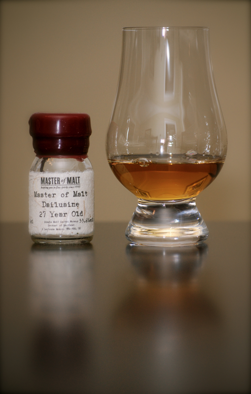 The ROK, Limpd, and the Wookie each received one Single Malt sample which they will soon review and write up on the blog. The Wookie, our self proclaimed Rum specialist, has been given the dubious honor of reviewing the Ron De Jeremy. I can’t wait to hear what he has to say about it! I wonder how it compares to The Kraken. I will start this series of reviews off with my tasting notes of the Dailuaine 27 Year Old.