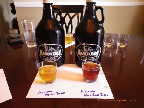 With the Holiday season upon us I need get back in the good graces of my sister and take care of an unfinished brew review from the summer.  Back in July my sis (we’ll call her Newt) and her fiancé (we’ll call him Wisk-E) drove up to my place in NJ with a trunk load of craft brew growlers from two breweries in North Carolina (Aviator Brewing Co and Natty Green’s).  All the brews were great but one from Aviator has become the stuff of legend amongst the Booze Dancers.