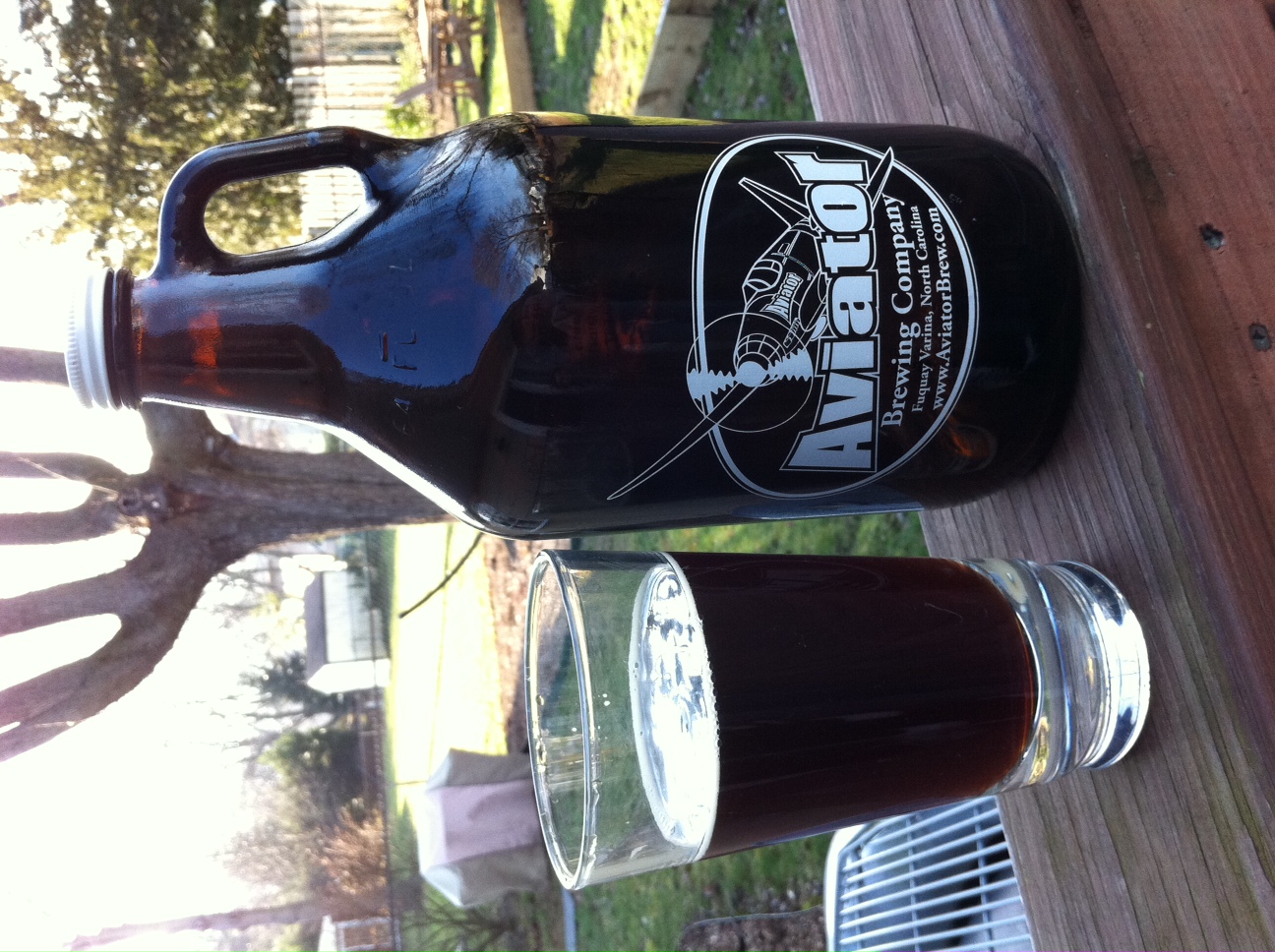 Yes, G-LO there is a Santa Claus and he drinks craft beer. I am sure over the next few days many of the Booze Dancer’s posts will be reviews of Christmas swag. For me I only asked for one thing, that was for my sis to load up her cooler with some tasty growlers from Aviator Brewing in Fuquay Varina, NC and tuck some crafty brew under my tree. I got my wish so here’s my review.