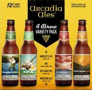 On the way back from Pappy’s house, I stopped by a beer distributor (oh, the joy of PA liquor laws) that specializes in sampler packs and picked up an Arcadia Ales sampler. In the pack was a little something for each of us, as the case contained the Anglers’ Ale, their IPA, the Sky High Rye and the Whitsun Ale. Arcadia is a relatively new microbrewery (est. 1996) in Battle Creek, MI that specializes in handcrafted British-style ales.