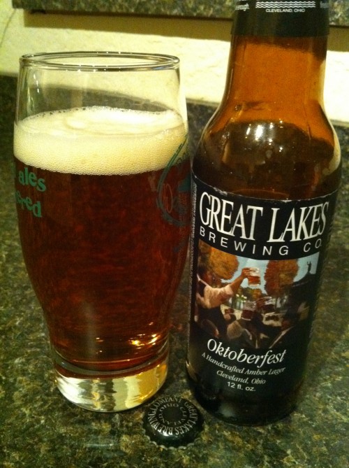 As my Oktoberfest beer reviews wind down, I have saved one of the best for last: Great Lakes Brewing Company’s Oktoberfest. G-LO has reviewed several of the Great Lakes brews, i.e. the Burning River Pale Ale, the Christmas Ale, the Edmund Fitzgerald Porter, the Commodore Perry IPA, the Doppelrock Doppelbock Lager, the Lake Erie Monster Imperial IPA, and the Eliot Ness Amber Lager, and we have found that Great Lakes runs out a great line of craft beer. Their Oktoberfest is definitely in keeping with our prior assessments.