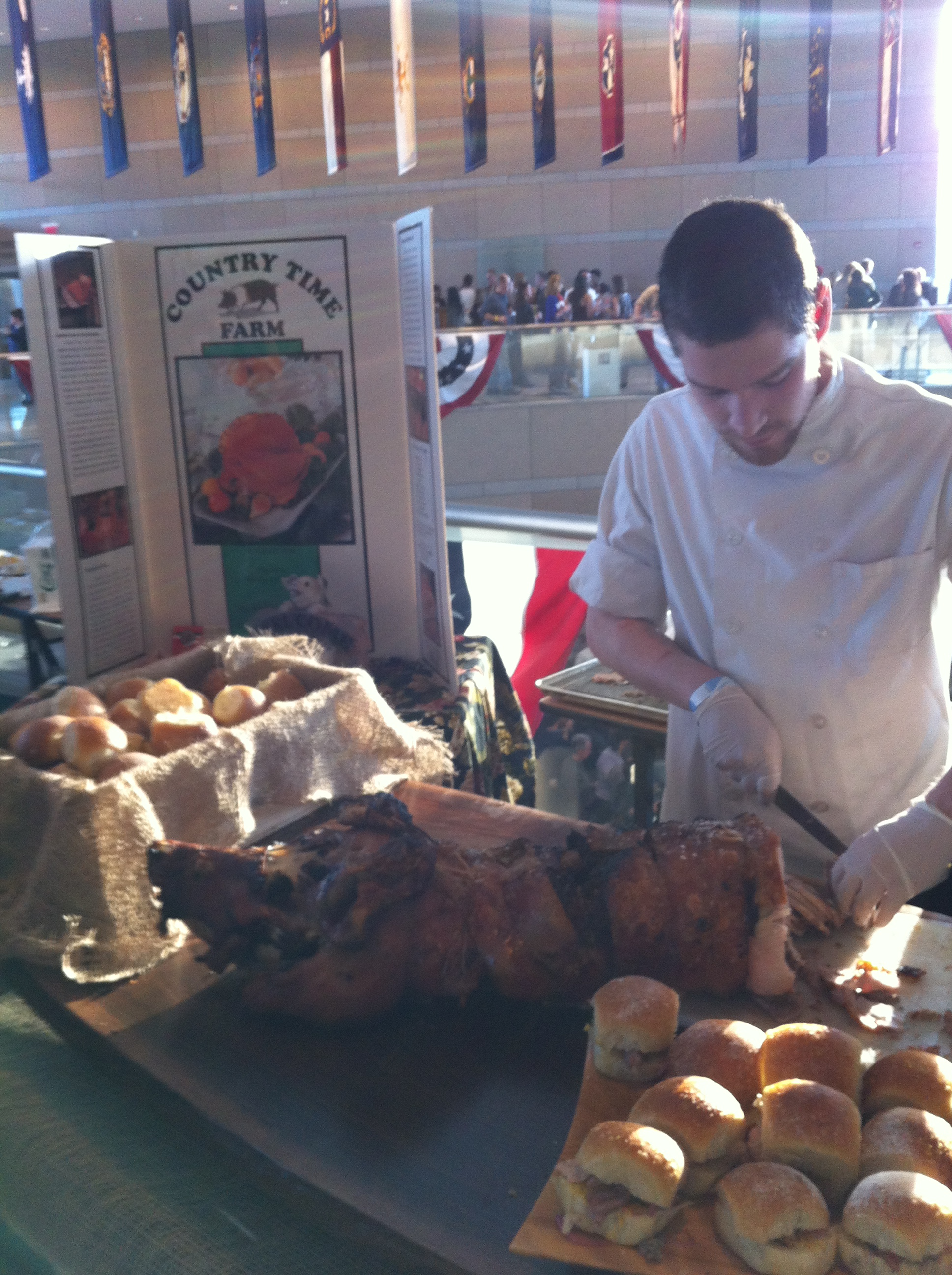 - Food Favorites: The funniest was South Wark’s M.L.T. (Mutton, Lettuce, and Tomato) sandwich. I also loved the whole pig being carved for roast pork sandwiches by Country Time Farm (pictured below), and the mini beer and cheese sausage with smoked sauerkraut sandwiches that Brauhaus Schmitz rolled out.