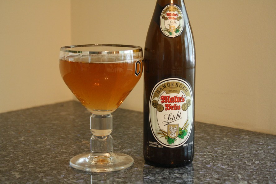 The other day, I hit the import wall at Kress Liquors. Among my selections was a bottle of Mahr’s Bräu Leicht. Mahr’s Bräu is a brewery in Bamberg, Germany that has been around since at least 1670 and owned by the same family since 1895. They produce a variety of beers: Hell, Pils, Light (Leicht), White, Gig (coachman’s beer) and two kinds of Bock beer (Bock and White Bock). Bamberg, a city of about 70,000 people has seven other breweries besides Mahr’s Brau and is known for their smoked Rauchbier. The Leicht has received mixed reviews, with Beer Advocate giving it a solid 82, and Rate Beer giving it a pitiful 27.