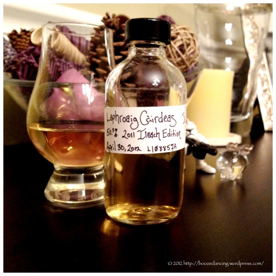 Thanks to the generosity of Sean Foushee (@WhiskyMarks on Twitter; @smfoushee on Instagram), and a brief conversation that we had via Instagram, we were able to arrange a whisky trade. He gave me a 200ML sample of the Laphroaig Cairdeas in exchange for samples of the Mackmyra 1st Edition and Angel’s Envy.