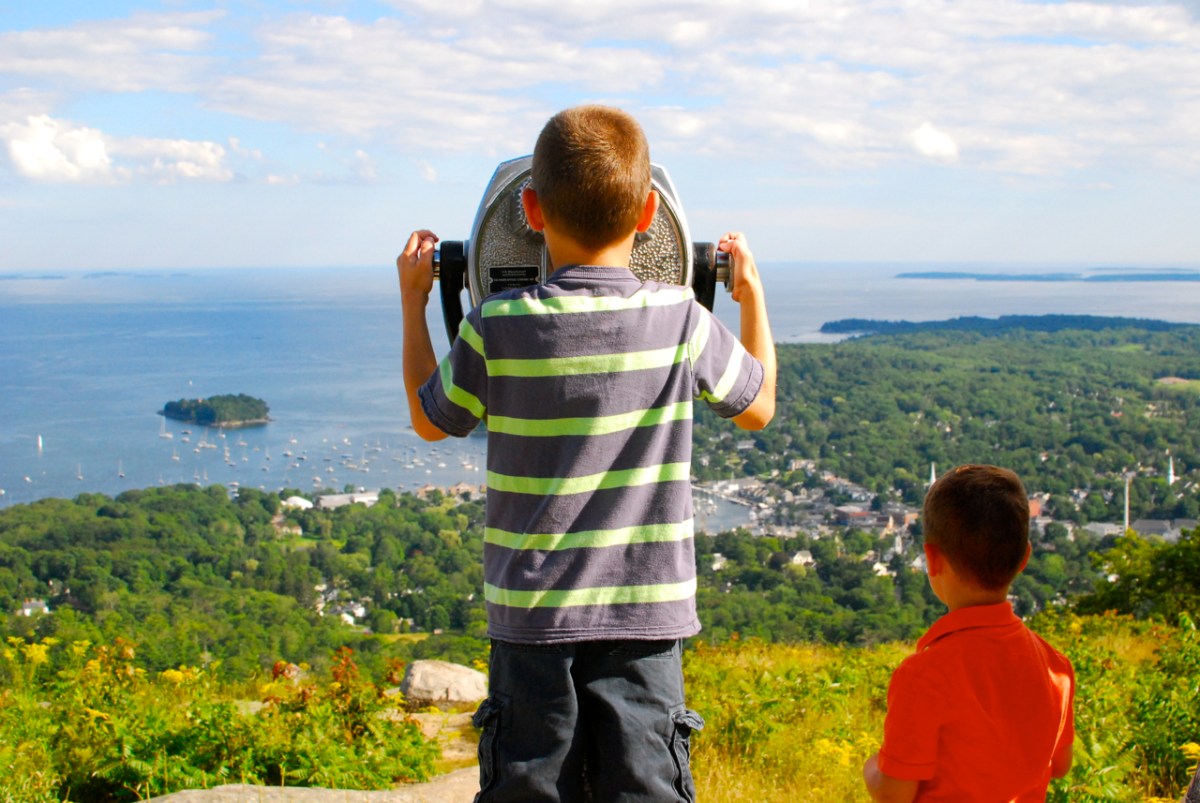 Taking in the views of Camden Harbor from the top of Mt. Battie in Camden Hills State Park