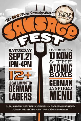 PHILADELPHIA, PA – On Saturday, September 21, celebrate the beginning of Germany’s famed Oktoberfest with seasonal food specials and German-style craft beers at The Best “Wurst” Saturday Ever hosted by City Tap House (The Radian Balcony, 3925 Walnut Street, 215-662-0105). From 1 to 4 p.m., the kitchen will prepare and serve an extended menu of Bavarian fare, while many of the bar’s 60 taps will be dedicated to both local and world beers brewed in honor of the annual suds festival. Both food and beer will be available on a “pay as you go” basis, and TJ Kong & the Atomic Bomb will provide live musical entertainment.