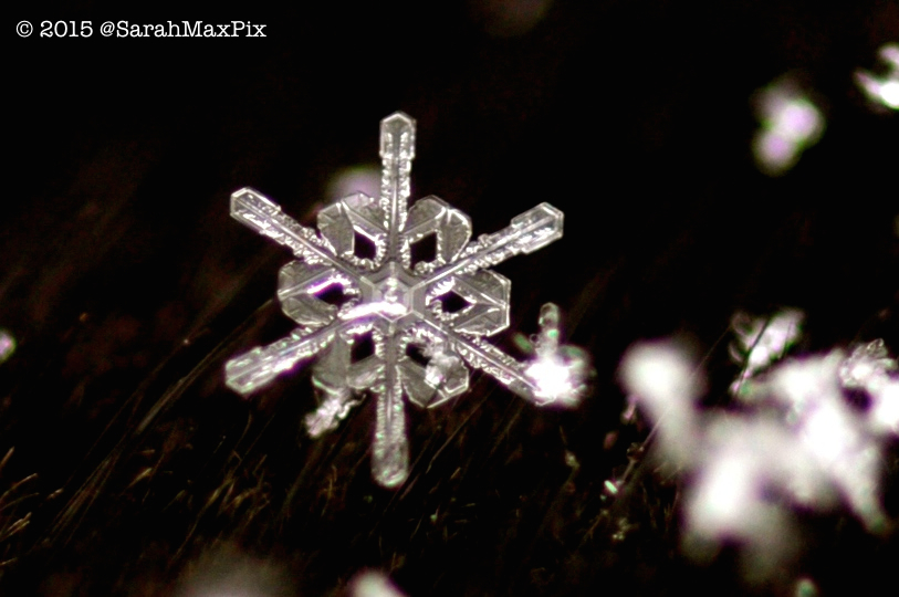 It’s a pretty simple story: a droplet of water vapor condenses and freezes, then nearby droplets evaporate which is kind of strange since it is a wee bit cold out, and that vapor sticks, freezing to our little friend making it “grow” into what we call a snowflake. Maybe it’s slightly more complicated than that. But the end result is a unique object of natural beauty if not a fairly cold and delicate one. The saying goes that no two are the same. It’s pretty hard to test that but it’s a wonderful thought to hold to: the specialness of a single entity in nature.