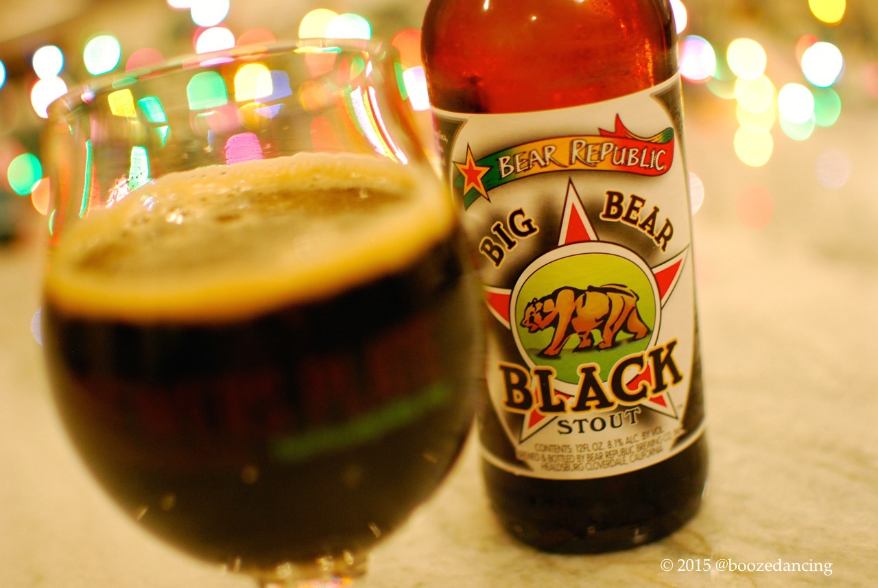 After a couple of days in a row that got dangerously close to 90 degrees, on the night of this tasting, the temps took a small dip into the 70s, with evening temps going down into the high 40s. In other words, it was the perfect night for a Stout. When I opened the fridge to see what I had in stock, I noticed that I still had a bottle of Bear Republic’s Big Bear Black Stout. Given all of our very good experiences with Bear Republic, I was psyched to try this.