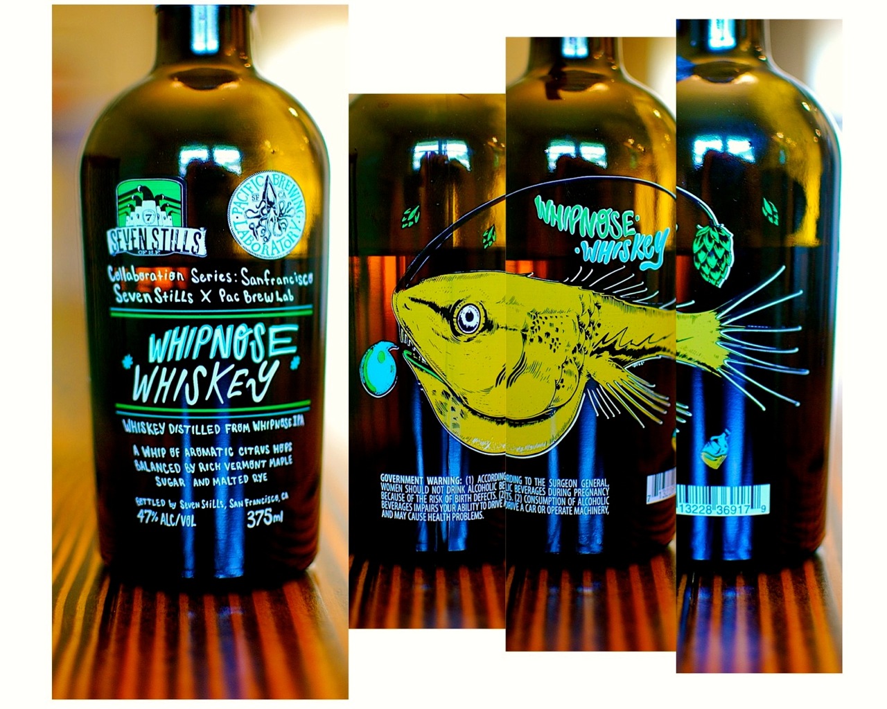 Whipnose is the first whiskey in our Collaboration Series, with Pacific Brewing Laboratory. This whiskey is made from Pac Brew Lab’s double IPA and opens with huge whips of west coast hops: Simcoe, Cascade and Centennial. The whiskey drinks like a concentrated IPA, without any of the hop bitterness, and finishes with sweet maple sugar.