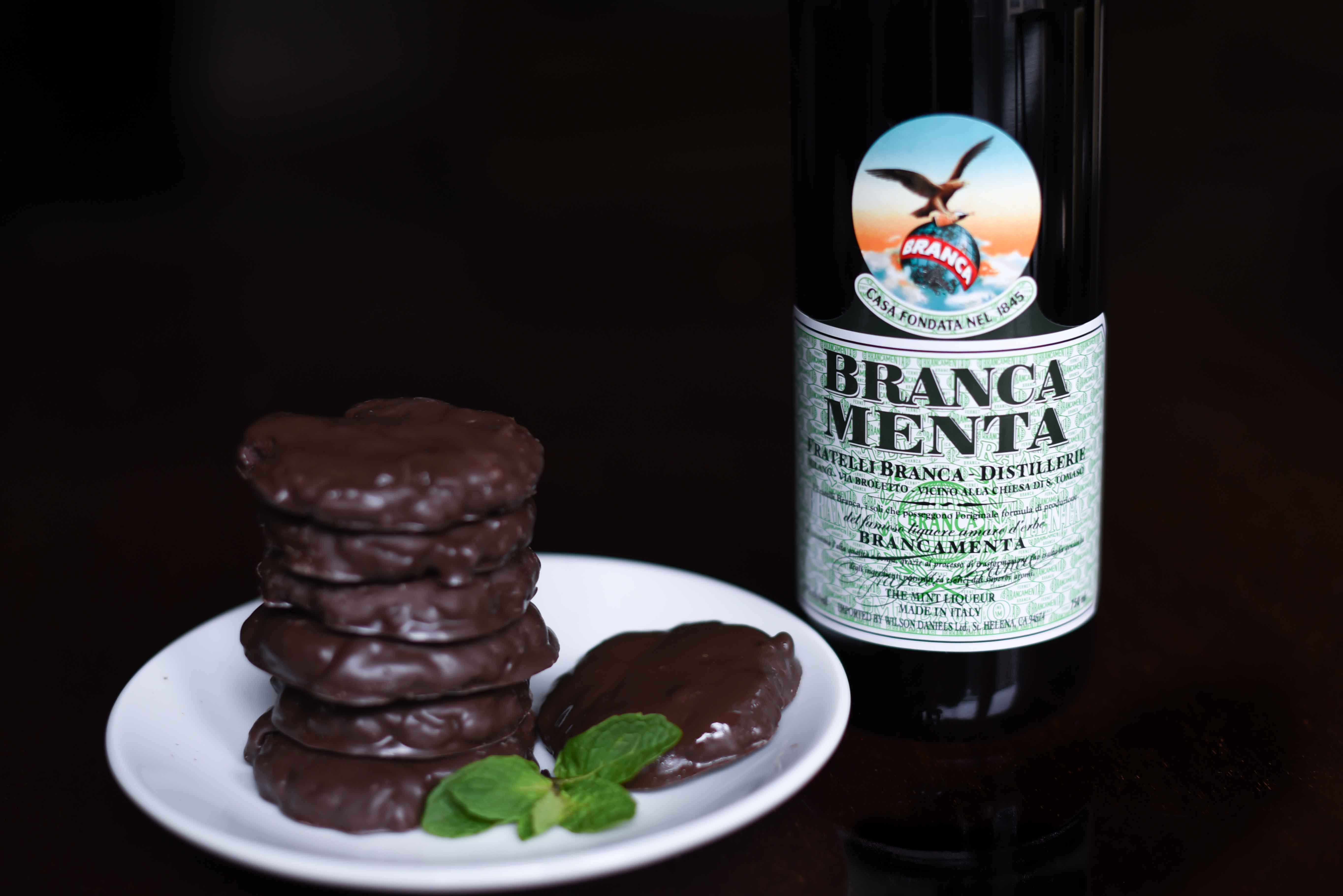 Fast forward to 2015 when I had my first taste of Branca Menta. This was NOT the stuff I was pilfering out of my parents liquor cabinet (very un-Girl Scout like behavior. Maybe had I been a Girl Scout I would have been better behaved, and never pilfered anything!) But back to Branca Menta, it’s much more complex than Creme de Menthe, with deep herbs lingering under that mint flavor. It was an instant favorite as an after dinner digestif. So what happens when you combine it with one of my all time favorite cookies? THIS!