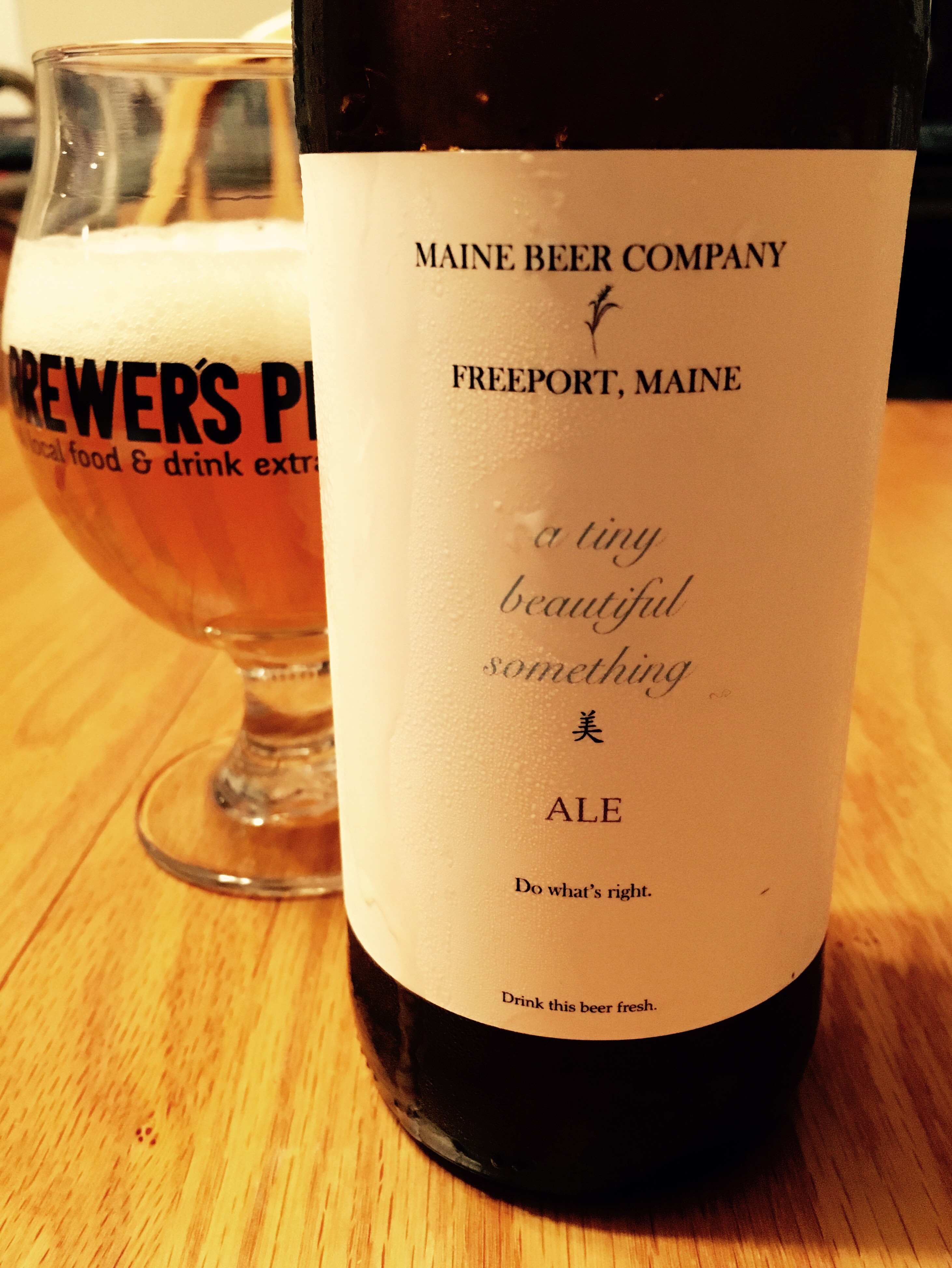 An aficionado of the Maine Beer Company, G-LO once again made a pit stop during his travels and came back with a box-o-beer. Because he was raised right, he shared his box with the various porch hangers on. I was lucky enough to get two of these beers. One such beer (and the subject of this here review) was a Pale Ale called A Tiny Beautiful Something. This beer was first brewed in January of 2014 and just happened to be a part of the eight beer rotating line-up when G-LO was there to make his purchases. Maine Beer Company products are meant to be enjoyed fresh and I was fortunate enough to get a bottle that was dated 07/26/16. 36 days from production is pretty darn fresh to me!
