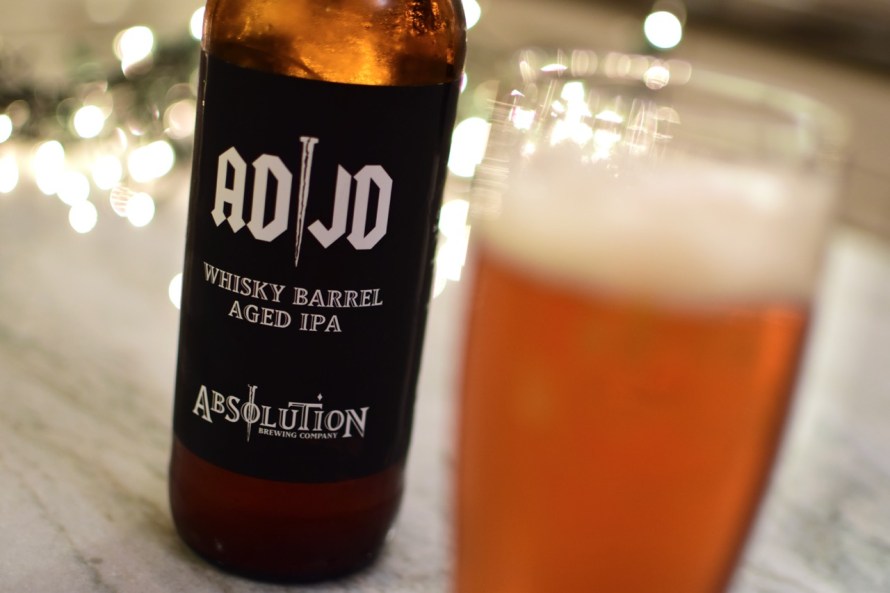Before we get to my review, here’s what the good people at Absolution Brewing Company have to say about their AD/JD Whisky Barrel Aged IPA: