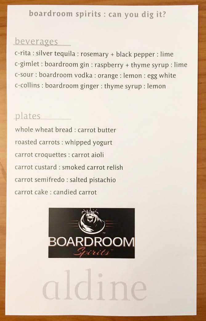 ‘Boardroom Spirits C Event at Aldine – The Menu’