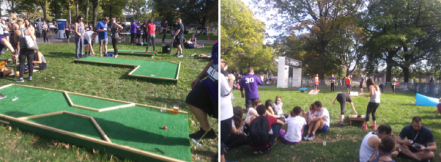 For those interested in solely partaking in the post-race festivities, there was a ‘Beer Fest Only’ ticket available for purchase. VIP tickets were also available for purchase, which granted access to a private lounge area with wait staff to get beers for you, free massages, private bathrooms, exclusive food and beer offerings, and a limited edition poster. All attendees received complimentary beer samples with their ticket purchase, along with a tasting glass, koozie, and other swag from participating breweries. For entertainment, the post-race festival featured live music, lawn games (I ruled at mini-golf!), brewery row, art installations, local food trucks, vendor village and plenty of lovely places to sit.