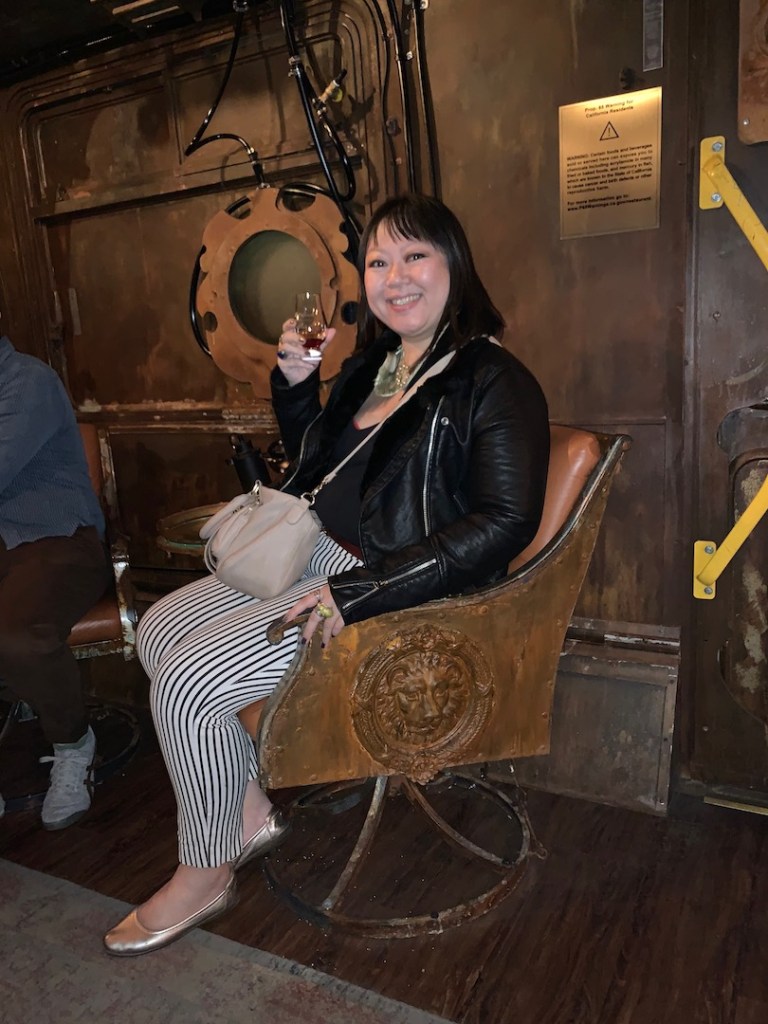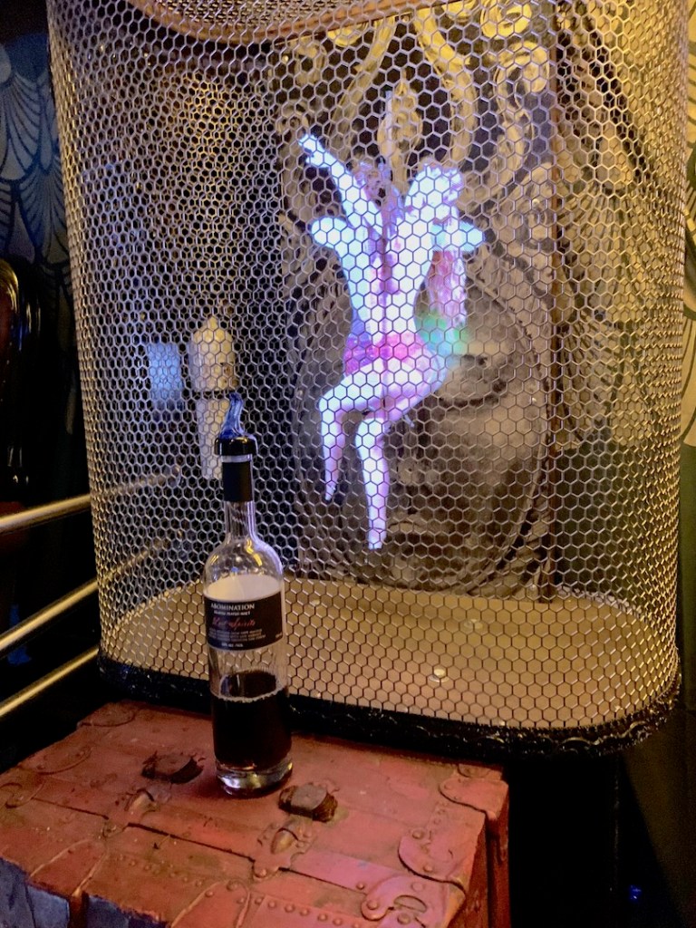 But it was time to go back to where we started. This time we traveled by coach and were entertained by hologramic burlesque dancers as we sipped the Abomination “Sayers of the Law” whiskey, one of two heavily peated Islay spirits that Lost Spirits has run through its “reactor”. Luckily, the dancers took hologramic one dollar bills since that’s what came out of the hologramic ATM machine onboard.