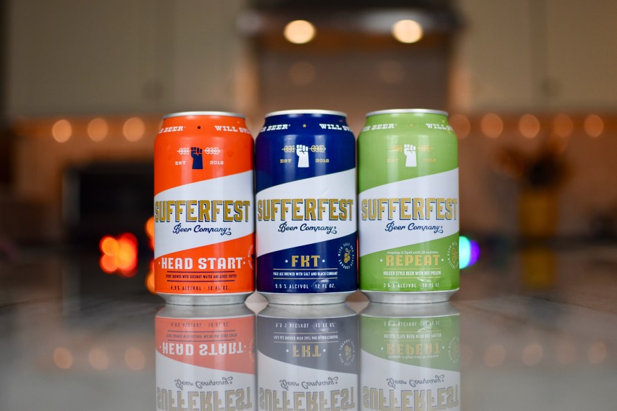 Back in early December, we received an email from a PR firm about a brewery from Chico, California called Sufferfest Beer Company. This brewery’s motto is “Will Sweat For Beer” and their specialty is brews “made with specific ingredients for post-workout/ride/hike, etc and are gluten-removed. Ingredients like bee pollen, salt, black currant, for example, all have their purposes — from rehydration and electrolyte replenishment to muscle recovery”. Given all that, we think “First we Suffer, then we Fest” would have been a more fitting motto. But what do we know?