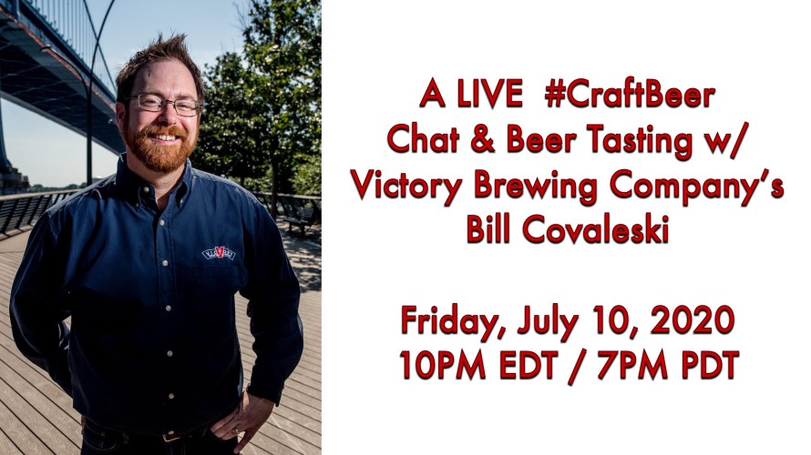 On Friday, July 10, 2020 at 10PM EDT / 7PM PDT (aka TONIGHT!), BoozeDancing TV will broadcast a LIVE #CraftBeer Chat with Bill Covaleski, Founder and Brewmaster of Downingtown, Pennsylvania’s Victory Brewing Company. This #BrewChat will be hosted by G-LO, Limpd, and our very own Craft Beer Savant, The Alemonger. The goal is to have fun and learn something about Bill, Victory Brewing, and Craft Beer in general while drinking a couple of Victory Brewing beers…