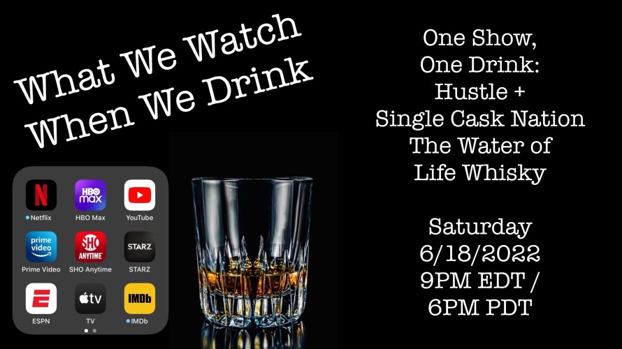 On Saturday, June 18, 2022 at 9PM EDT / 6PM PDT, we’re recording a LIVE episode of One Show, One Drink, part of the What We Watch When We Drink podcast empire! This time around, the Lads from The East Coast Office and the Lad from The West Coast Office will be discussing Hustle, the latest Netflix / Adam Sandler film while sampling the Single Cask Nation The Water of Life Whisky, a very special bottling that was released in celebration of The Water of Life – A Whisky Film .