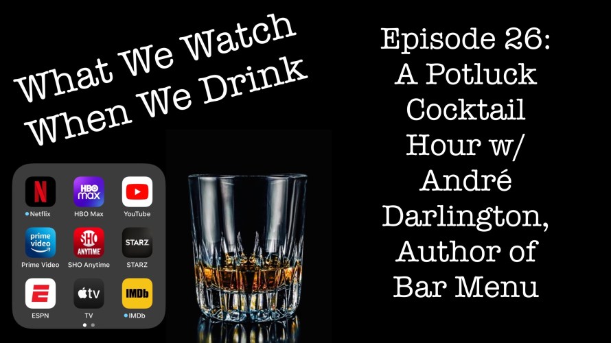 What We Watch When We Drink is honored to welcome back to the show author, cocktail maven, kitchen king, music geek, travel pro and our friend, André Darlington! It’s a pleasant chat about his new book, Bar Menu, as we dissect what happened to the in-home party since the days when our moms made Jell-O molds with fruit and finger sandwiches on Wonder white bread with…mayo.