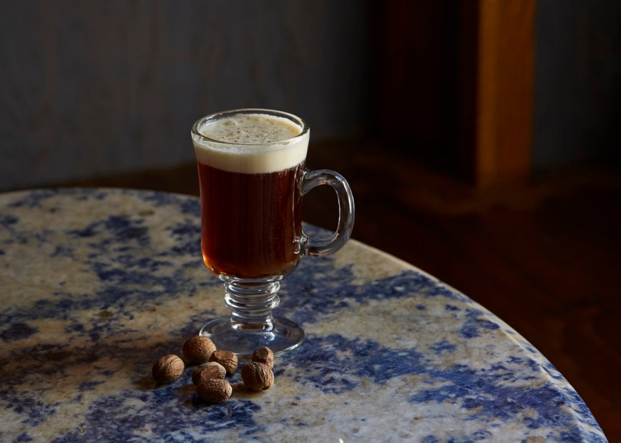 Method: Combine Averna, Aged Rum, Cognac, simple syrup in a hot toddy glass. Top with hot water. Add a dash of mole bitters. Top will cinnamon syrup whipped cream. Garnish with grated nutmeg