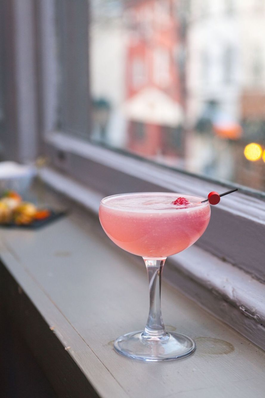 Method: Shake all ingredients with ice, strain and serve in champagne flute or coupe glass and garnish with a raspberry.