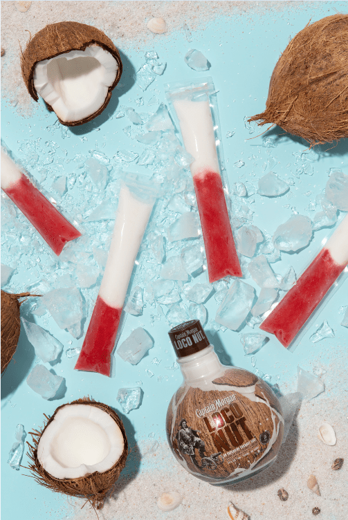 Method: Combine LocoNut and coconut water. Stir to combine. Separately, combine Captain Morgan White Rum, strawberry daiquiri mix, and water. Stir to combine. Fill a plastic freezie sleeve halfway up with strawberry daiquiri mixture. Top with LocoNut mixture and freeze overnight before serving.