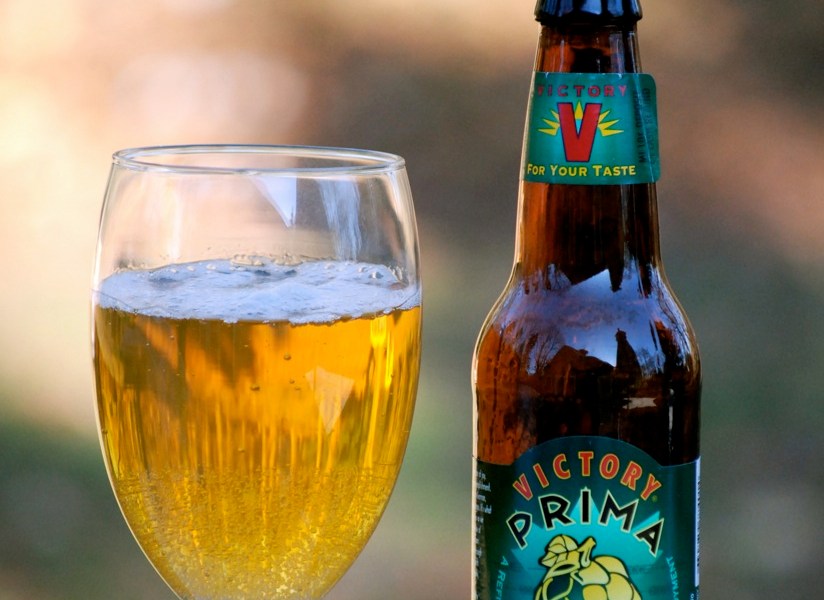 Thanks to a healthy dose of beautiful weather on Thanksgiving Day, I was able to enjoy this bottle of Victory Prima Pils while chatting with my Father In Law on his backyard deck. Here is what our friends at Victory Brewing have to say about their Prima Pils: